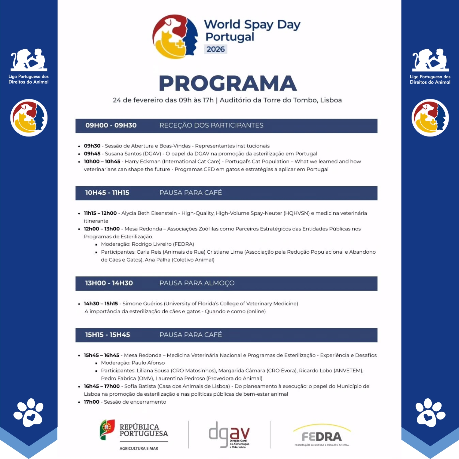 " A FEDRA - Federação de Defesa e Resgate Animal celebra, na véspera do Congresso que organiza amanhã, dia 24 de Fevereiro de 2026, em Lisboa, o World Spay Day Portygal 2026, o seu 2º aniversário. "